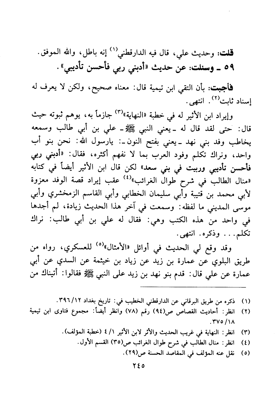 59 - وسئلت: عن حديث "أدبني ربي فأحسن تأديبي".