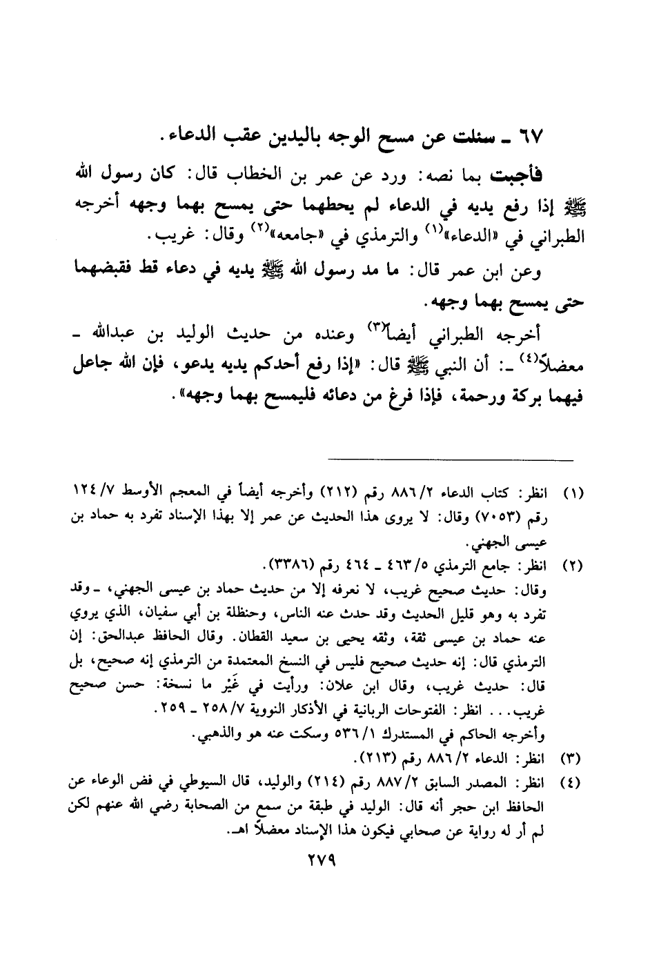 67 - سئلت عن مسح الوجه باليدين عقب الدعاء.