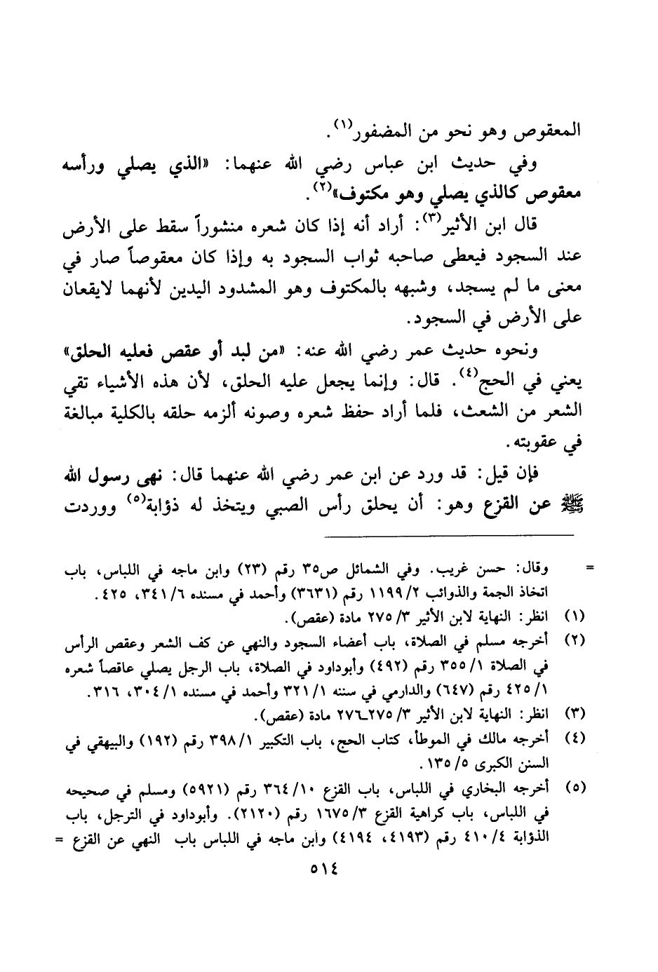 وفي حديث ابن عباس رضي الله عنهما: "الذي يصلي ورأسه معقوص كالذي يصلي وهو مكتوف".