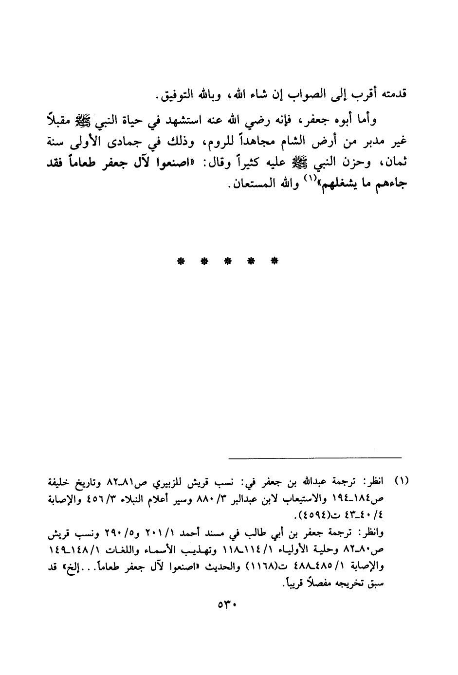وأما أبوه جعفر، فإنه رضي الله عنه استشهد في حياة النبي صلى الله عليه وسلم مقبلاً غير مدبر من أرض الشام مجاهدًا للروم، وذلك في جمادي الأولى سنة ثمان، وحزن النبي صلى الله عليه وسلم عليه كثيرًا وقال: "اصنعوا لآل جعفر طعامًا فقد جاءهم ما يشغلهم" والله المستعان.