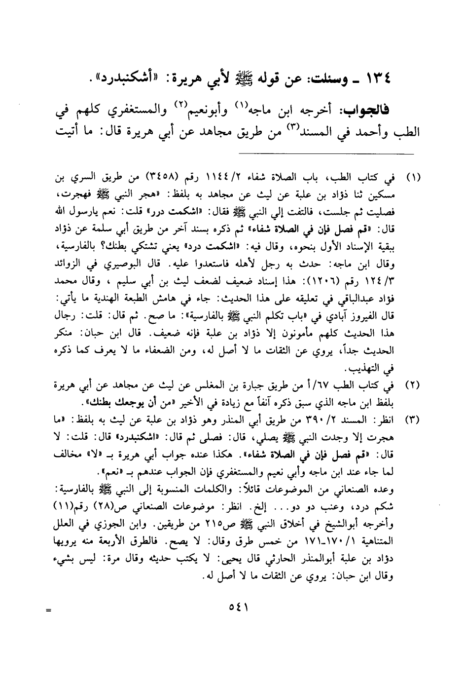 134 - وسئلت: عن قوله صلى الله عليه وسلم لأبي هريرة: "أشكنبدرد".