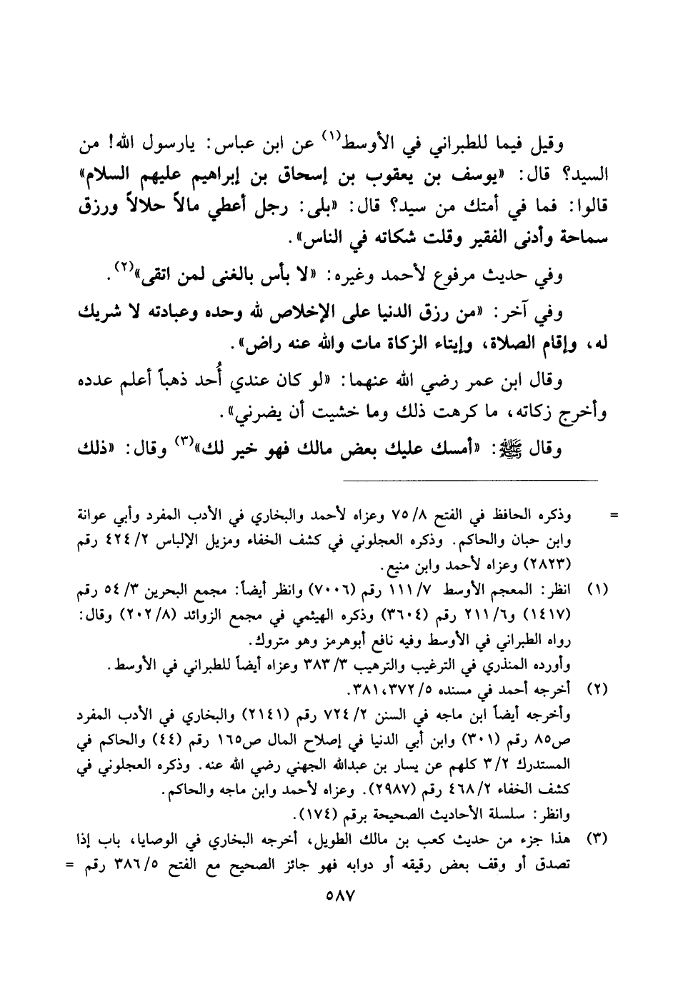 وقال صلى الله عليه وسلم: "أمسك عليك بعض مالك فهو خير لك" وقال: "ذلك