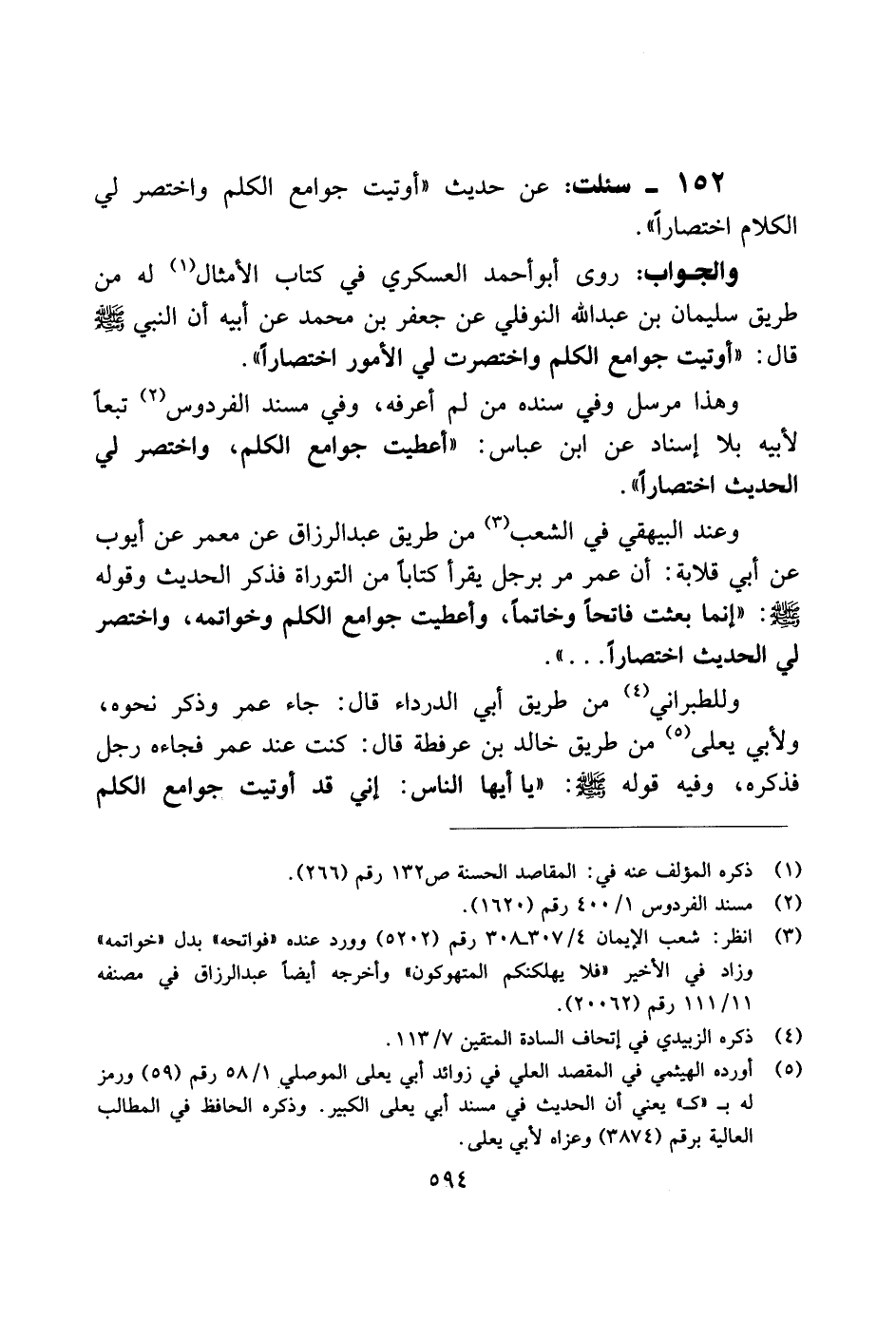 152 - سئلت: عن حديث "اوتيت جوامع الكلم واختصر لي الكلام اختصارًا".