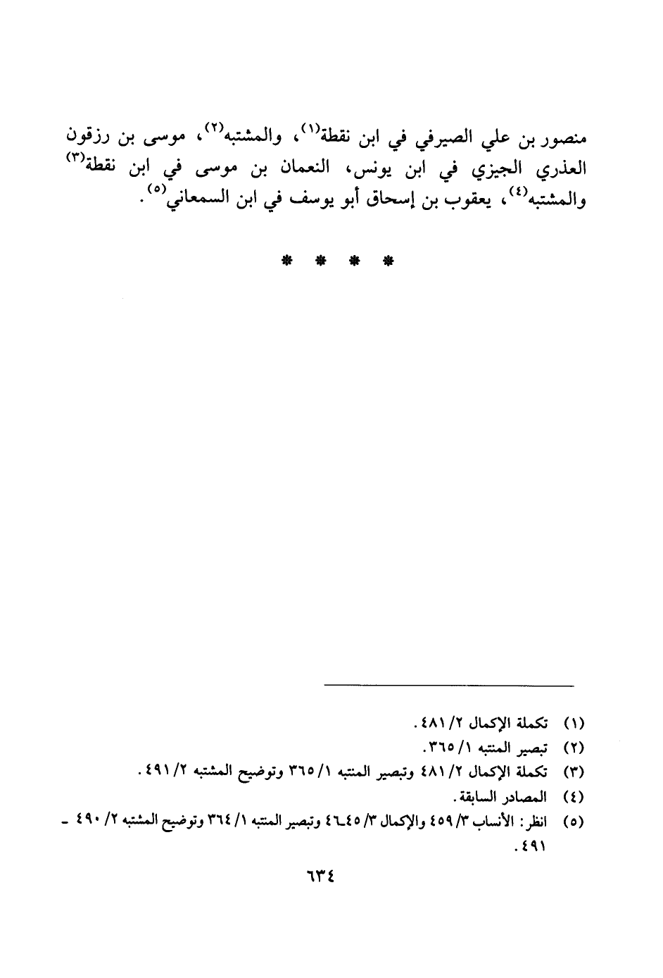 منصور بن علي الصيرفي في ابن نقطة، والمشتبه، موسى بن رزقون العذري الجيزي في ابن يونس، النعمان بن موسى في ابن نقطة والمشتبه، يعقوب بن إسحاق أبو يوسف في ابن السمعاني.