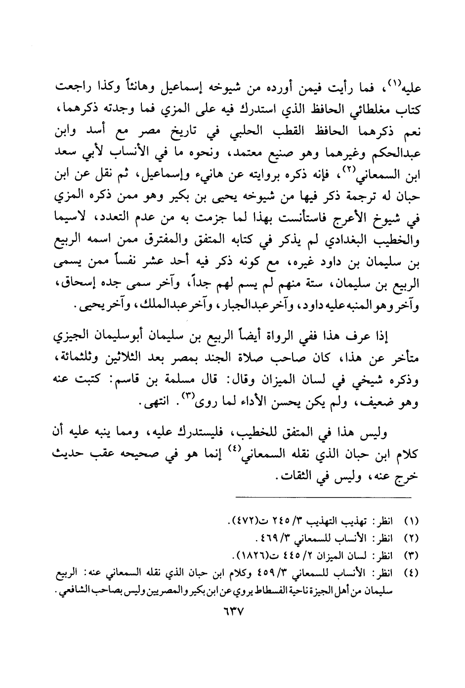وليس هذا في المتفق للخطيب، فليستدرك عليه، ومما ينبه عليه أن كلام ابن حبان الذي نقله السمعاني إنما هو في صحيحه عقب حديث خرج عنه، وليس في الثقات.