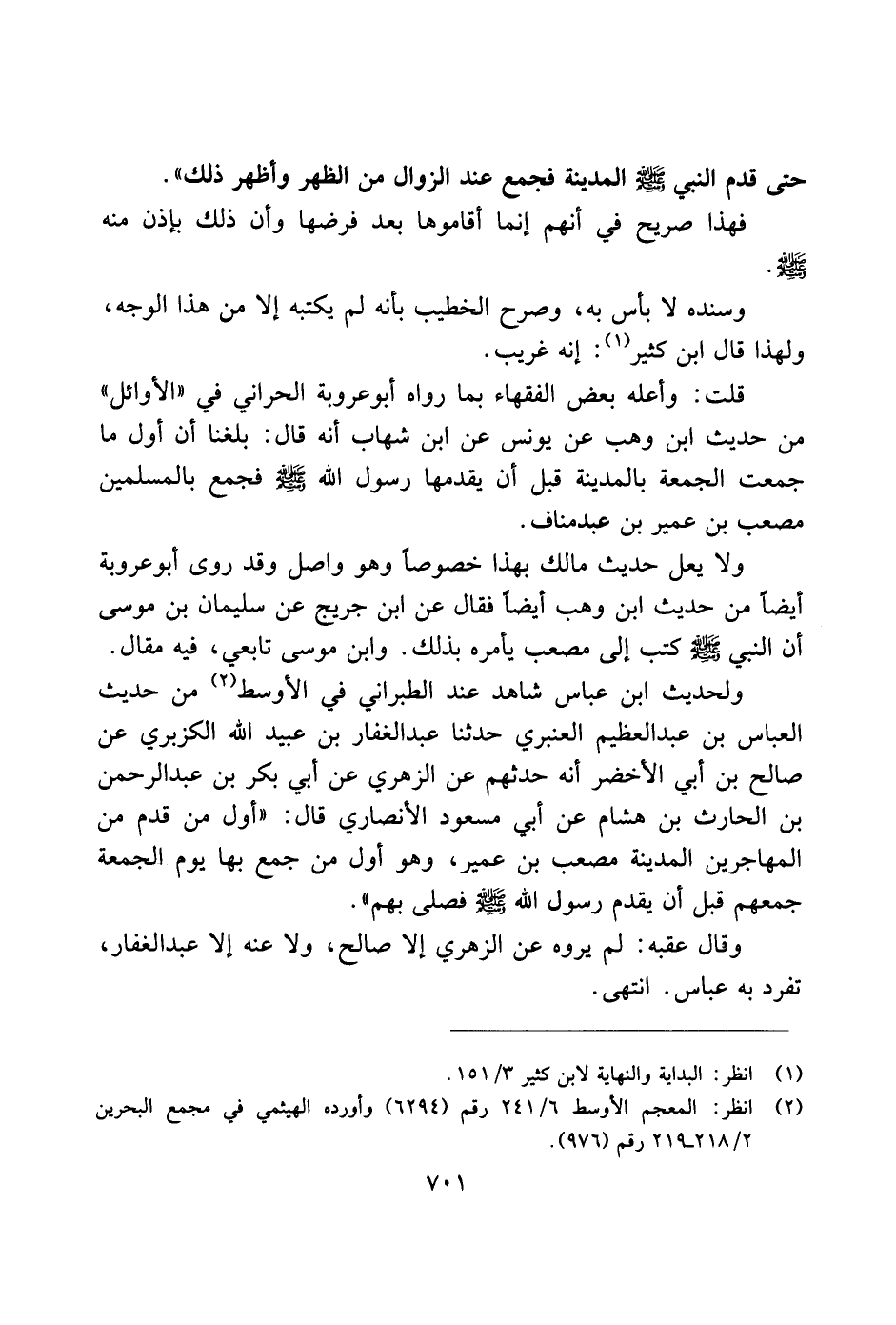 قلت: وأعله بعض الفقهاء بما رواه أبو عروبة الحراني في "الأوائل" من حديث ابن وهب عن يونس عن ابن شهاب أنه قال: بلغنا أن أول ما جمعت الجمعة بالمدينة قبل أن يقدمها رسول الله صلى الله عليه وسلم فجمع بالمسلمين مصعب بن عمير بن عبد مناف.