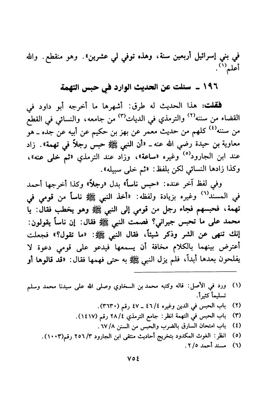 196 - سئلت عن الحديث الوارد في حبس التهمة