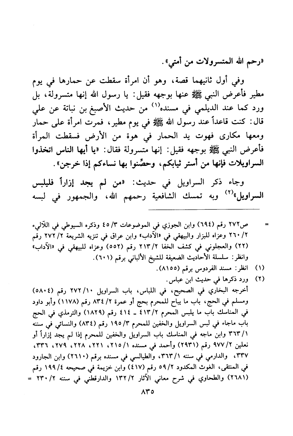 "رحم الله المتسرولات من أمتي".