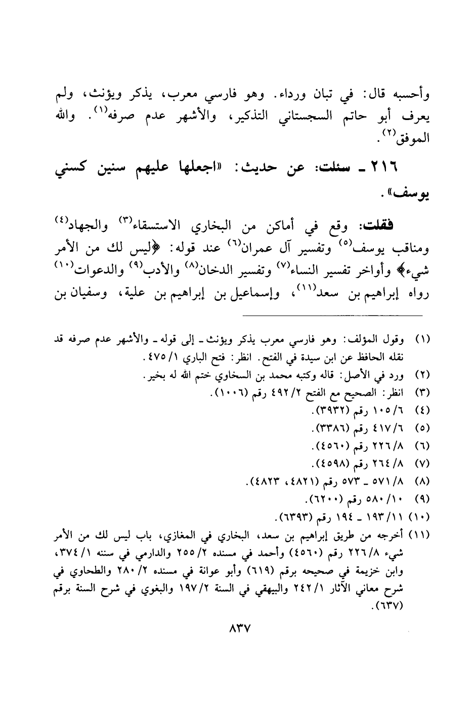 216 - سئلت: عن حديث: "اجعلها عليهم سنين كسني يوسف".