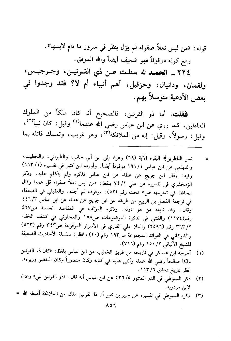 224 - الحمد لله سئلت عن ذي القرنين، وجرجيس، ولقمان، ودانيال، وحزقيل، أهم أنبياء أم لا؟ فقد وجدوا في بعض الأدعية متوسلاً بهم.