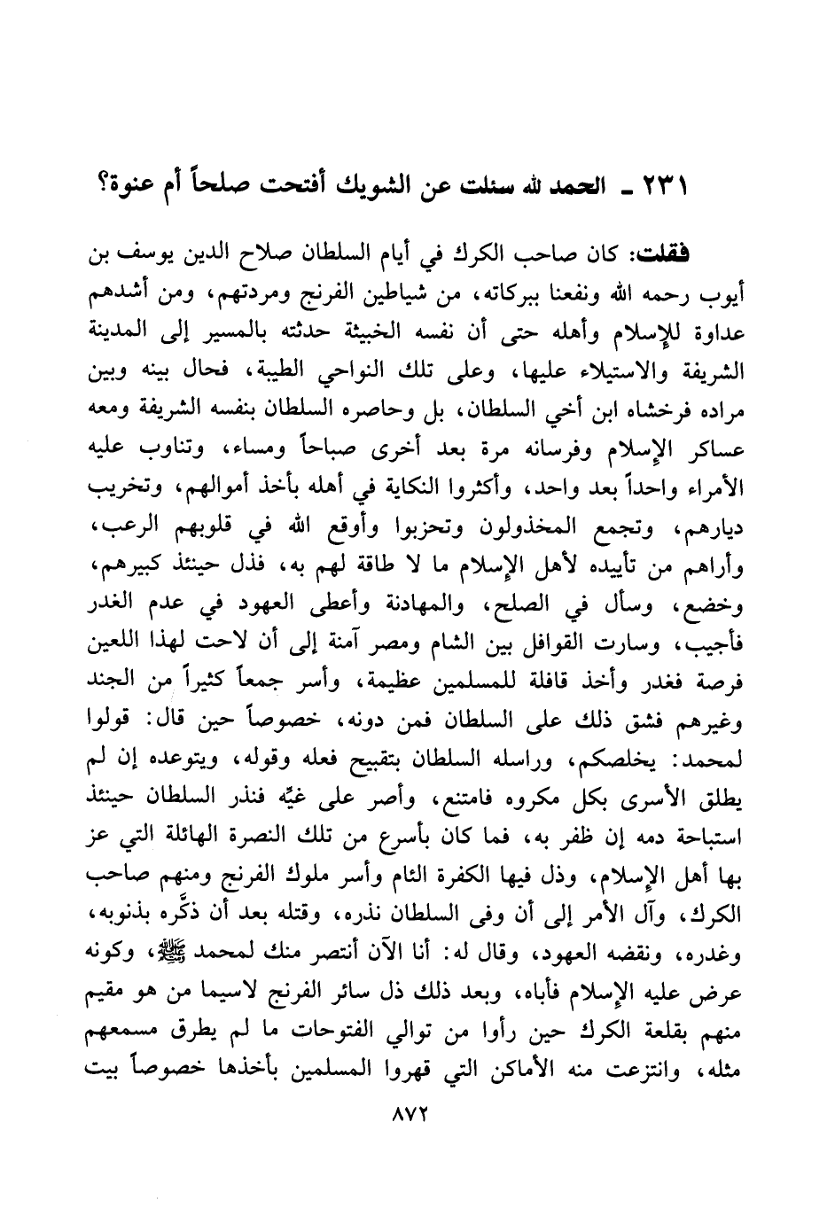 231 - الحمد لله سئلت عن الشويك أفتحت صلحًا أم عنوة؟