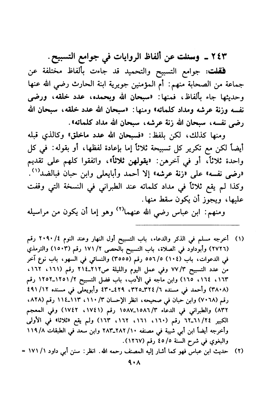 243 - وسئلت عن ألفاظ الروايات في جوامع التسبيح.