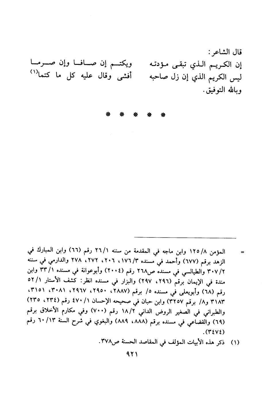ليس الكريم الذي إن زل صاحبه ... أفشى وقال عليه كل ما كتما