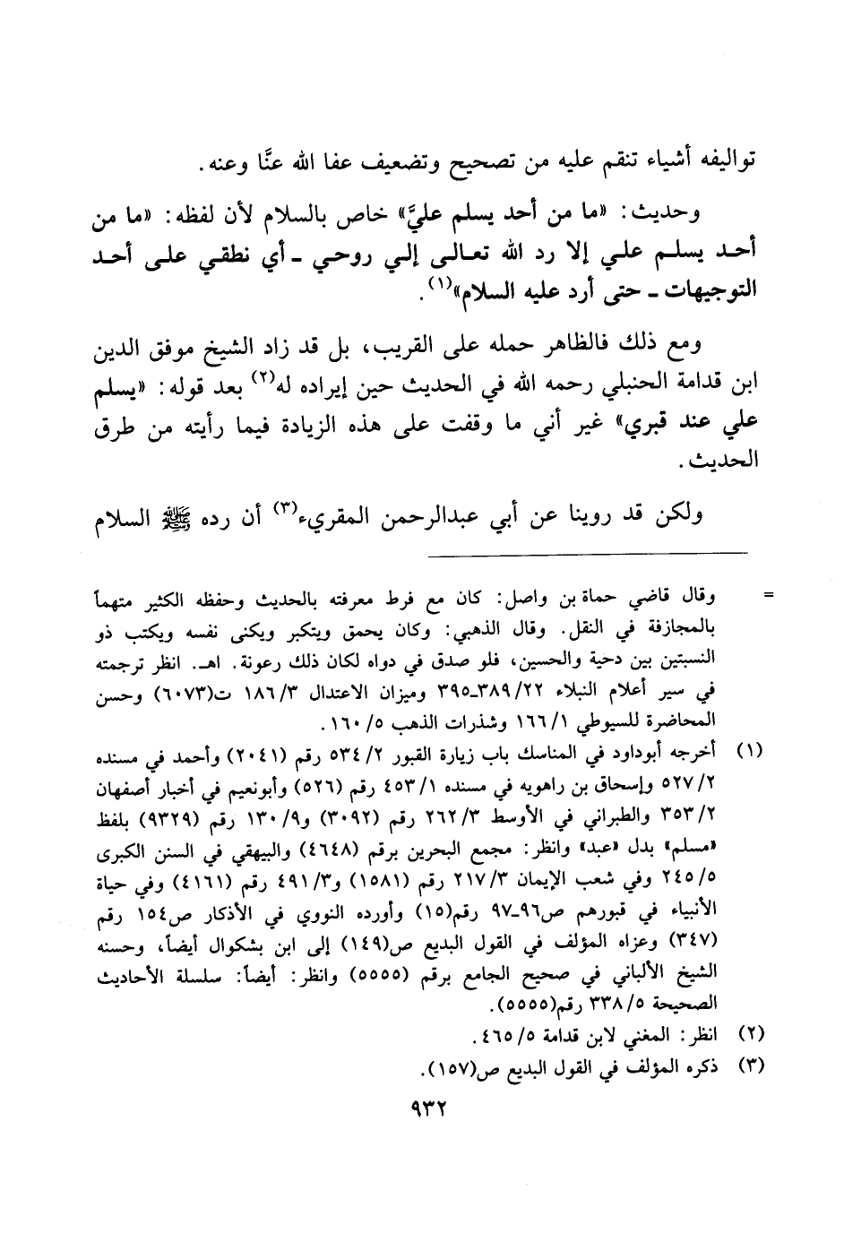 ومع ذلك فالظاهر حمله على القريب، بل قد زاد الشيخ موفق الدين ابن قدامة الحنبلي رحمه الله في الحديث حين إيراده له بعد قوله: "يسلم علي عند قبري" غير أني ما وقفت على هذه الزيادة فيما رأيته من طرق الحديث.