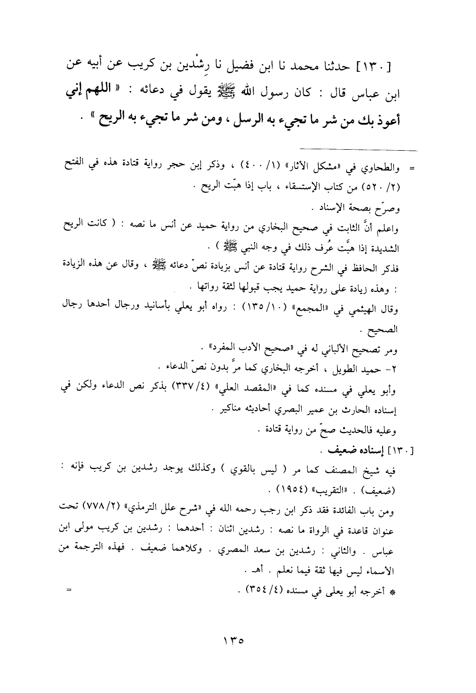 130 - حَدَّثَنَا مُحَمَّدٌ نا ابْنُ فُضَيْلٍ، نا رِشْدِينُ بْنُ كُرَيْبٍ، عَنْ أَبِيهِ، عَنِ ابْنِ عَبَّاسٍ، قَالَ: كَانَ رَسُولُ اللَّهِ صَلَّى اللهُ عَلَيْهِ وَسَلَّمَ يَقُولُ فِي دُعَائِهِ: «اللَّهُمَّ إِنِّي §أَعُوذُ بِكَ مِنْ شَرِّ مَا تَجِيءُ بِهِ الرُّسُلُ، وَمِنْ شَرِّ مَا تَجِيءُ بِهِ الرِّيحُ»