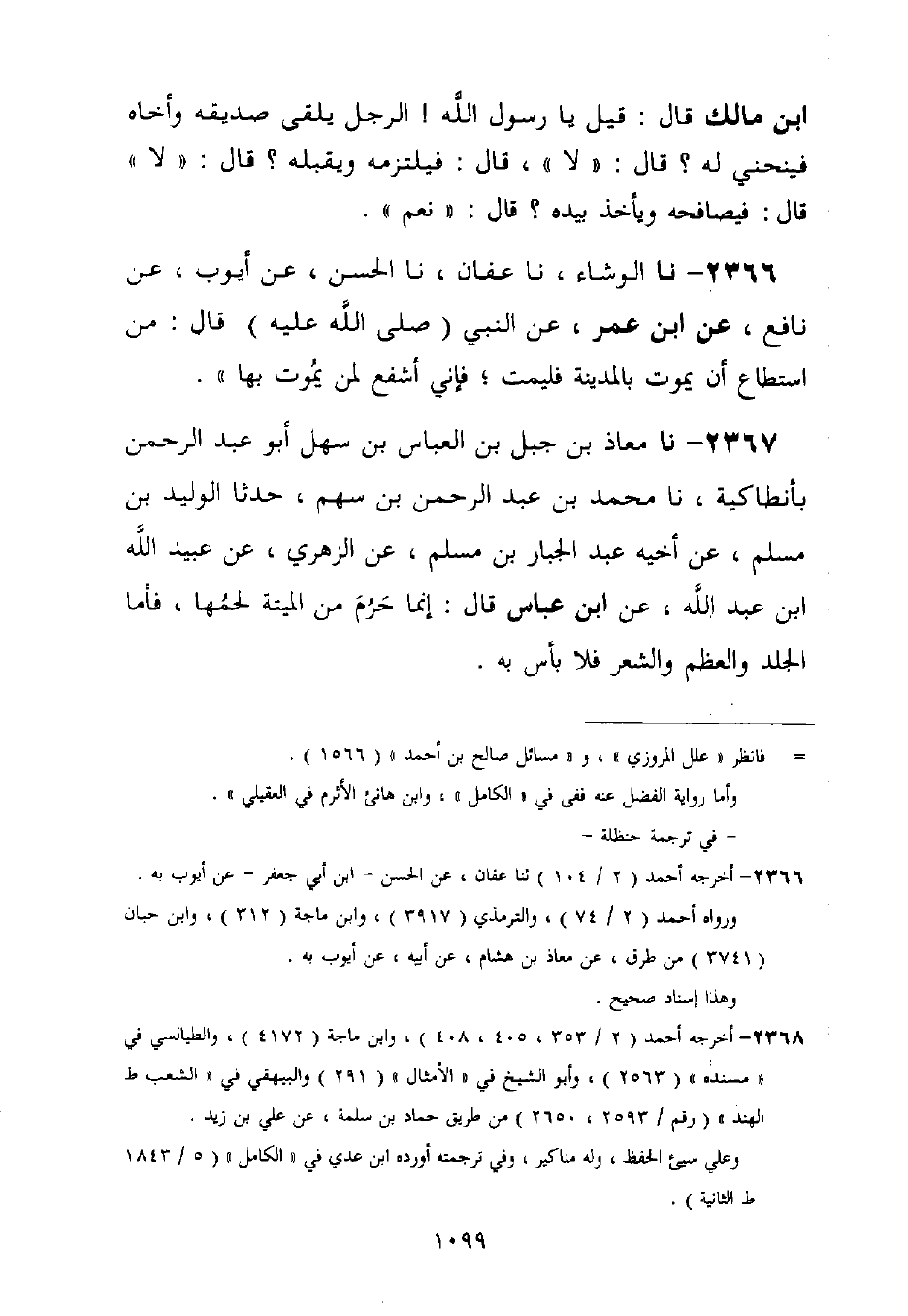 2367 - نا مُعَاذُ بْنُ جَبَلِ بْنِ الْعَبَّاسِ بْنِ سَهْلٍ أَبُو عَبْدِ الرَّحْمَنِ، بِأَنْطَاكِيَّةَ نا مُحَمَّدُ بْنُ عَبْدِ الرَّحْمَنِ بْنِ سَهْمٍ، حَدَّثَنَا الْوَلِيدُ بْنُ مُسْلِمٍ، عَنْ أَخِيهِ عَبْدِ الْجَبَّارِ بْنِ مُسْلِمٍ، عَنِ الزُّهْرِيِّ، عَنْ عُبَيْدِ اللَّهِ بْنِ عَبْدِ اللَّهِ، عَنِ ابْنِ عَبَّاسٍ قَالَ: §إِنَّمَا حَرُمَ مِنَ الْمَيْتَةِ لَحْمُهَا، فَأَمَّا الْجِلْدُ وَالْعَظْمُ وَالشَّعَرُ فَلَا بَأْسَ بِهِ