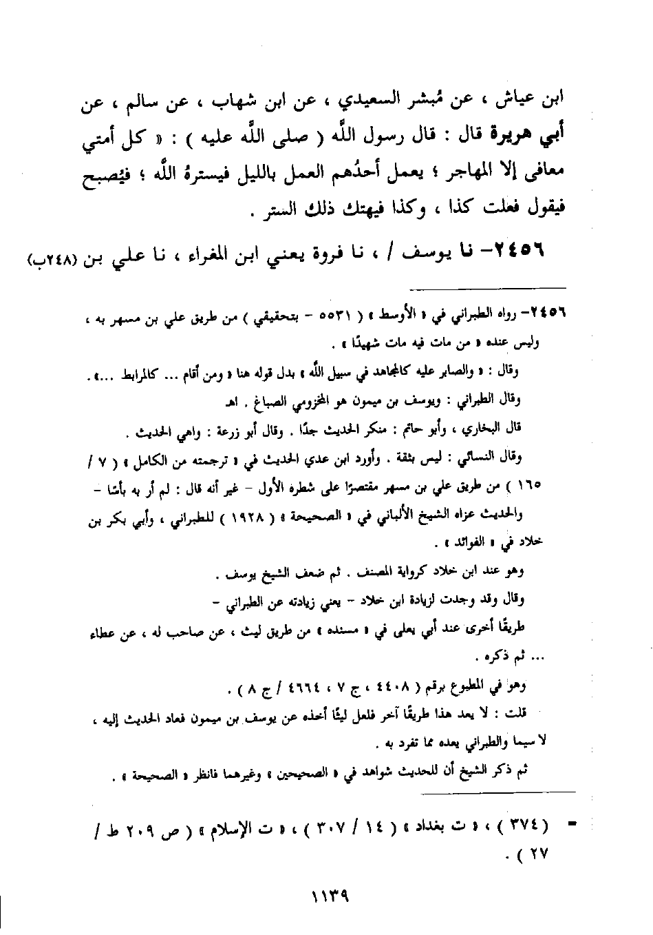 2456 - نا يُوسُفُ، نا فَرْوَةُ، يَعْنِي ابْنَ الْمَغْرَاءِ، نا عَلِيُّ بْنُ -[1140]- مُسْهِرٍ، عَنْ يُوسُفَ بْنِ مَيْمُونٍ، عَنْ عَطَاءٍ، عَنِ ابْنِ عُمَرَ، عَنْ عَائِشَةَ قَالَتْ: قَالَ رَسُولُ اللَّهِ صَلَّى اللَّهُ عَلَيْهِ وَسَلَّمَ: «§الطَّاعُونُ شَهَادَةٌ لِأُمَّتِي، وَخْزُ أَعْدَائِكُمْ مِنَ الْجِنِّ، غُدَّةٌ كَغُدَّةِ الْبَعِيرِ تَخْرُجُ بَيْنَ الْآبَاطِ وَالْمَرَاقِّ، مَنْ مَاتَ مِنْهُ مَاتَ شَهِيدًا، وَمَنْ أَقَامَ مِنْهُ كَانَ كَالْمُرَابِطِ فِي سَبِيلِ اللَّهِ، وَمَنْ فَرَّ مِنْهُ كَانَ كَالْفِرَارِ مِنَ الزَّحْفِ»