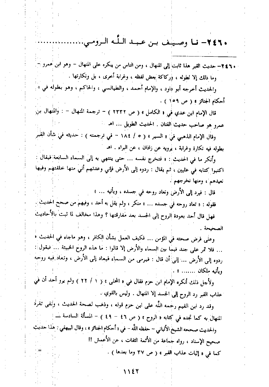 2460 - نا وَصِيفُ بْنُ عَبْدِ اللَّهِ الرُّومِيُّ -[1143]- بِأَنْطَاكِيَّةَ نا مُحَمَّدُ بْنُ حَفْصٍ الْأَنْطَاكِيُّ الْقَصَّابُ، نا مُحَمَّدُ بْنُ غَالِبٍ الرَّقِّيُّ، نا أَبُو قَتَادَةَ الْحَرَّانِيُّ، عَنْ شُعْبَةَ، عَنِ الْمِنْهَالِ، عَنْ زَاذَانَ، عَنِ الْبَرَاءِ، عَنِ النَّبِيِّ صَلَّى اللَّهُ عَلَيْهِ وَسَلَّمَ: §حَدِيثَ الْقَبْرِ بِطُولِهِ