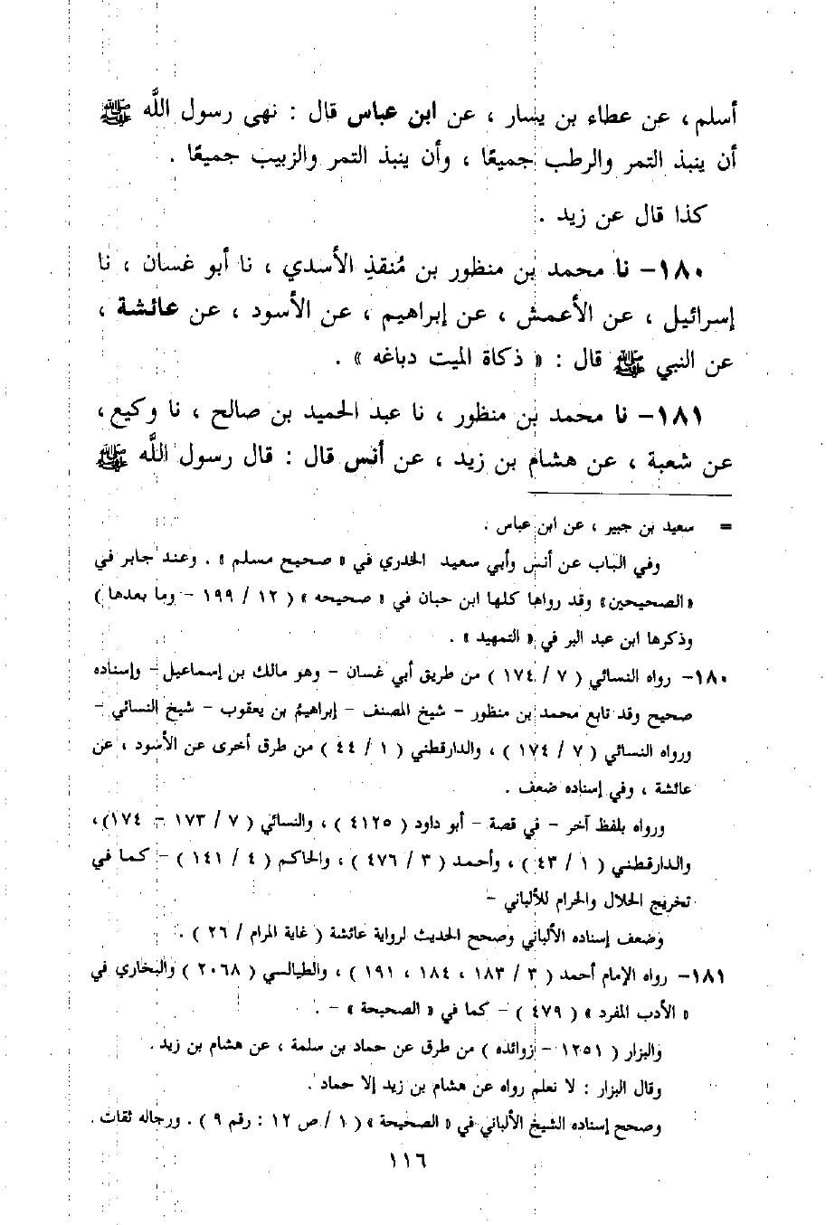 180 - نا مُحَمَّدُ بْنُ مَنْظُورِ بْنِ مُنْقِذٍ الْأَسَدِيُّ، نا أَبُو غَسَّانَ، نا إِسْرَائِيلُ، عَنِ الْأَعْمَشِ، عَنْ إِبْرَاهِيمَ، عَنِ الْأَسْوَدِ، عَنْ عَائِشَةَ، عَنِ النَّبِيِّ صَلَّى اللَّهُ عَلَيْهِ وَسَلَّمَ قَالَ: «§ذَكَاةُ الْمَيِّتِ دِبَاغُهُ»