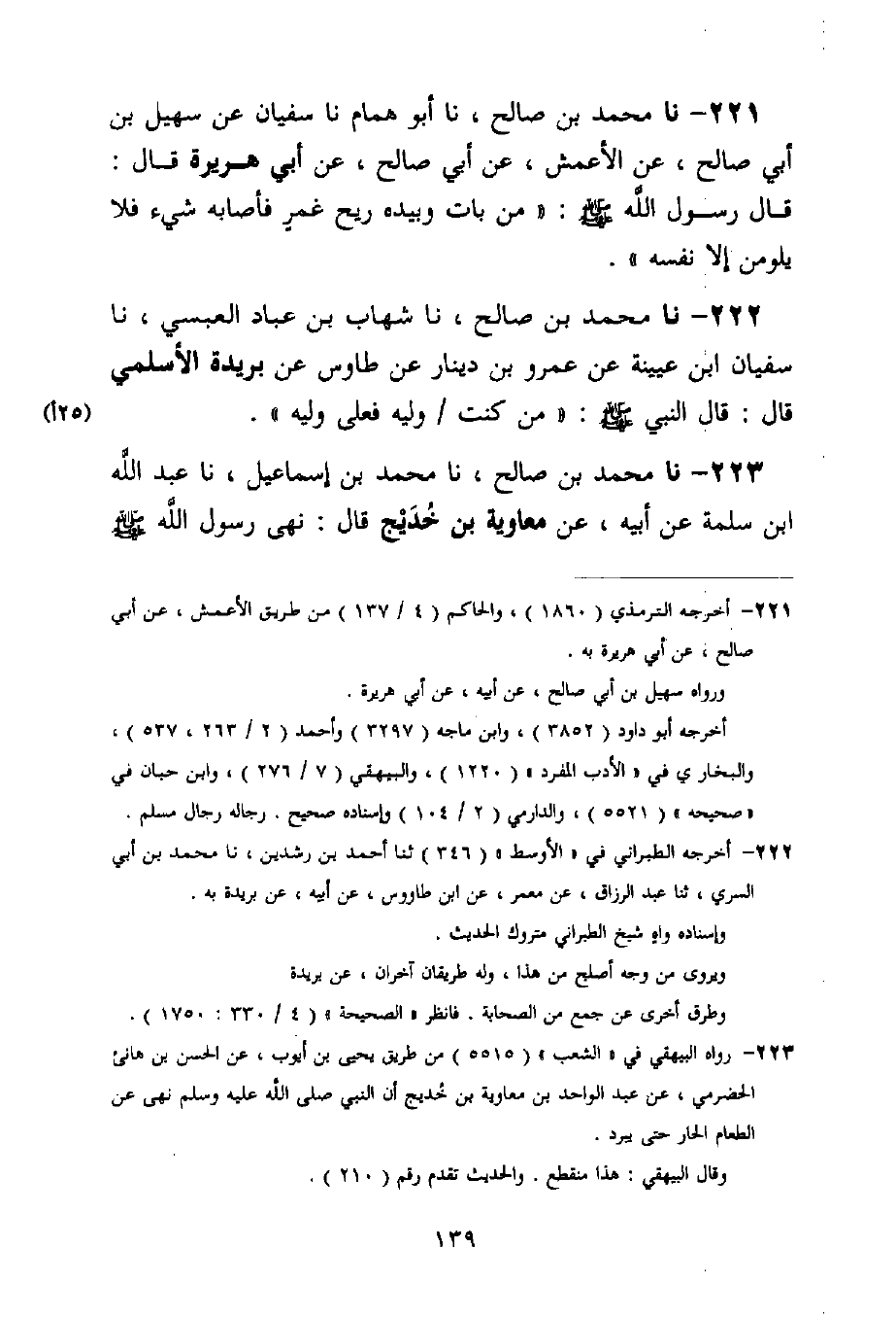 222 - نا مُحَمَّدُ بْنُ صَالِحٍ، نا شِهَابُ بْنُ عَبَّادٍ الْعَبْسِيُّ، نا سُفْيَانُ بْنُ عُيَيْنَةَ، عَنْ عَمْرِو بْنِ دِينَارٍ، عَنْ طَاوُسٍ، عَنْ بُرَيْدَةَ الْأَسْلَمِيِّ قَالَ: قَالَ النَّبِيُّ صَلَّى اللَّهُ عَلَيْهِ وَسَلَّمَ: «§مَنْ كُنْتُ وَلِيَّهُ فَعَلِيٌّ وَلِيُّهُ»