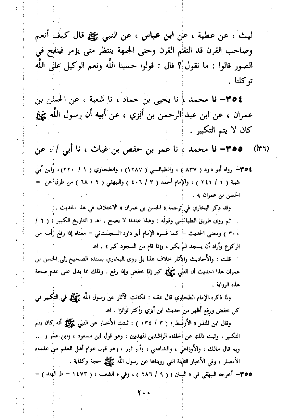 354 - نا مُحَمَّدٌ، نا يَحْيَى بْنُ حَمَّادٍ نا شُعْبَةُ، عَنِ الْحَسَنِ بْنِ عِمْرَانَ، عَنِ ابْنِ عَبْدِ الرَّحْمَنِ بْنِ أَبْزَى، عَنْ أَبِيهِ، أَنَّ رَسُولَ اللَّهِ صَلَّى اللَّهُ عَلَيْهِ وَسَلَّمَ كَانَ §لَا يُتِمُّ التَّكْبِيرَ "