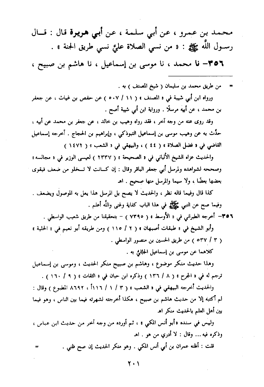 356 - نا مُحَمَّدٌ، نا مُوسَى بْنُ إِسْمَاعِيلَ، نا هَاشِمُ بْنُ صُبَيْحٍ، -[202]- عَنْ أَبِي أَنَسٍ الْمَكِّيِّ، عَنِ ابْنِ جُرَيْجٍ، عَنْ عَطَاءِ بْنِ أَبِي رَبَاحٍ، عَنِ ابْنِ عُمَرَ قَالَ: قَالَ رَسُولُ اللَّهِ صَلَّى اللَّهُ عَلَيْهِ وَسَلَّمَ: «§مَا وُلِدَ مَوْلُودٌ ذَكَرٌ فِي أَهْلِ بَيْتٍ إِلَّا أَصْبَحَ فِيهِمْ عِزٌّ لَمْ يَكُنْ»