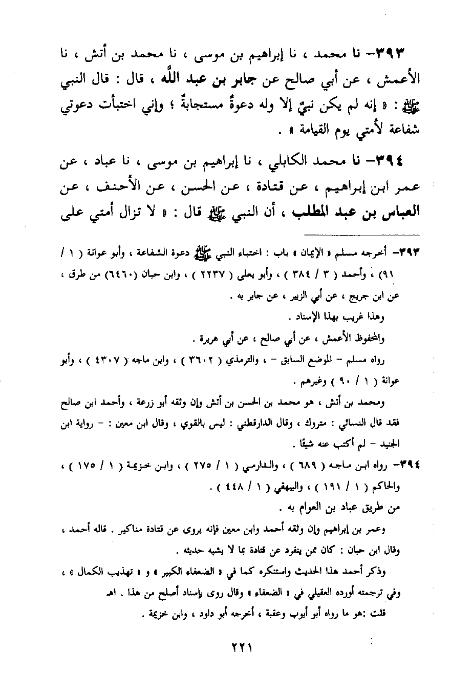 393 - نا مُحَمَّدٌ، نا إِبْرَاهِيمُ بْنُ مُوسَى، نا مُحَمَّدُ بْنُ أَتَشٍ، نا الْأَعْمَشُ، عَنْ أَبِي صَالِحٍ، عَنْ جَابِرِ بْنِ عَبْدِ اللَّهِ قَالَ: قَالَ النَّبِيُّ صَلَّى اللَّهُ عَلَيْهِ وَسَلَّمَ: «إِنَّهُ §لَمْ يَكُنْ نَبِيٌّ إِلَّا وَلَهُ دَعْوَةٌ مُسْتَجَابَةٌ، وَإِنِّي اخْتَبَأْتُ دَعْوَتِي شَفَاعَةً لِأُمَّتِي يَوْمَ الْقِيَامَةِ»