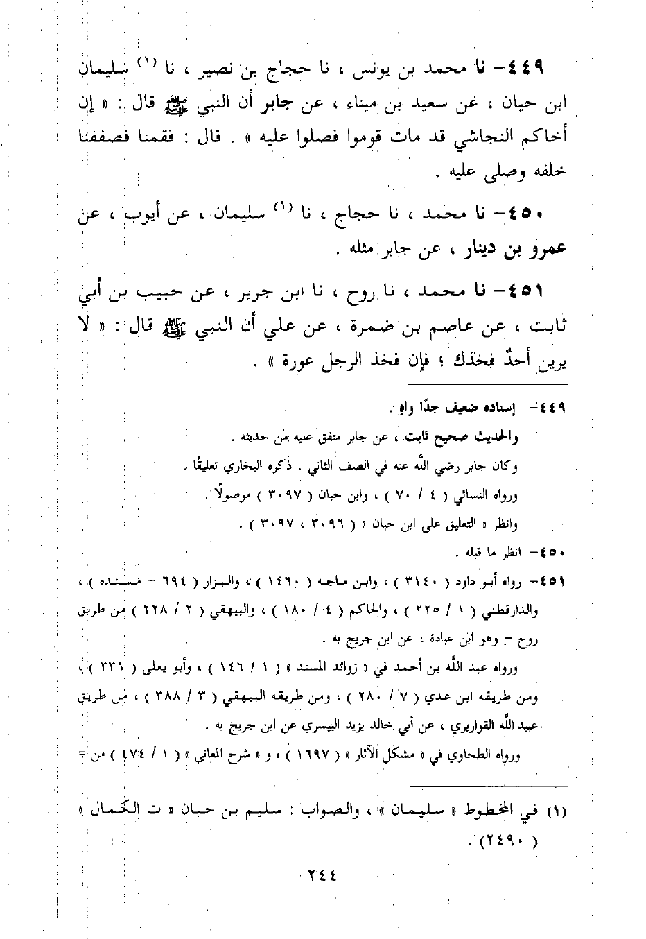 450 - نا مُحَمَّدٌ، نا حَجَّاجٌ، نا سُلَيْمَانُ، عَنْ أَيُّوبَ، عَنْ عَمْرِو بْنِ دِينَارٍ، عَنْ جَابِرٍ، مِثْلَهُ