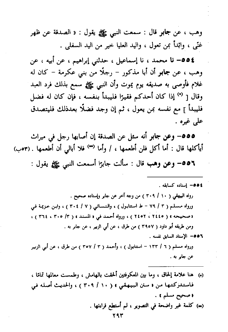 555 - وَعَنْ جَابِرٍ، أَنَّهُ سُئِلَ عَنِ §الصَّدَقَةِ إِنْ أَصَابَهَا رَجُلٌ فِي مِيرَاثٍ أَيَأْكُلُهَا قَالَ: «أَمَّا أَكْلٌ فَلَنْ أَطْعَمَهَا وَأَمَّا. . . . . فَلَا أُبَالِي أَنْ أَطْعَمَهَا»