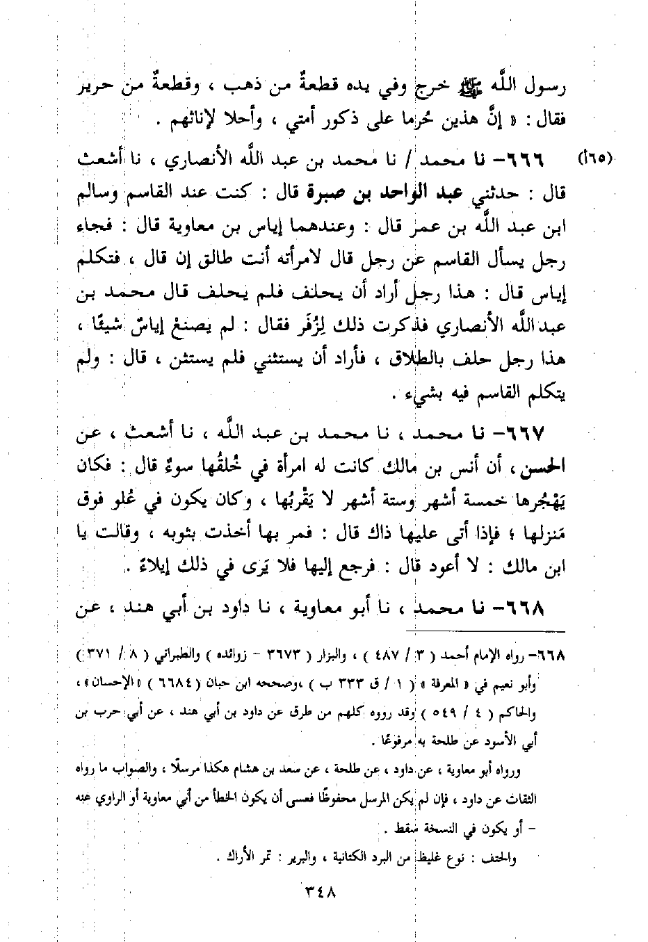 666 - نا مُحَمَّدٌ، نا مُحَمَّدُ بْنُ عَبْدِ اللَّهِ الْأَنْصَارِيُّ، نا أَشْعَثُ قَالَ: حَدَّثَنِي عَبْدُ الْوَاحِدِ بْنُ صَبِرَةَ قَالَ: كُنْتُ عِنْدَ الْقَاسِمِ وَسَالِمِ بْنِ عَبْدِ اللَّهِ بْنِ عُمَرَ قَالَ: وَعِنْدَهُمَا إِيَاسُ بْنُ مُعَاوِيَةَ قَالَ: فَجَاءَ رَجُلٌ يَسْأَلُ الْقَاسِمَ عَنْ §رَجُلٍ قَالَ لِامْرَأَتِهِ أَنْتِ طَالِقٌ إِنْ قَالَ، فَتَكَلَّمَ إِيَاسٌ قَالَ: «هَذَا رَجُلٌ أَرَادَ أَنْ يَحْلِفَ فَلَمْ يَحْلِفْ» قَالَ مُحَمَّدُ بْنُ عَبْدِ اللَّهِ الْأَنْصَارِيُّ فَذَكَرْتُ ذَلِكَ لَزُفَرَ فَقَالَ: لَمْ يَصْنَعْ إِيَاسٌ شَيْئًا، «هَذَا رَجُلٌ حَلَفَ بِالطَّلَاقِ، فَأَرَادَ أَنْ يَسْتَثْنِيَ فَلَمْ يَسْتَثْنِ» قَالَ: وَلَمْ يَتَكَلَّمِ الْقَاسِمُ فِيهِ بِشَيْءٍ