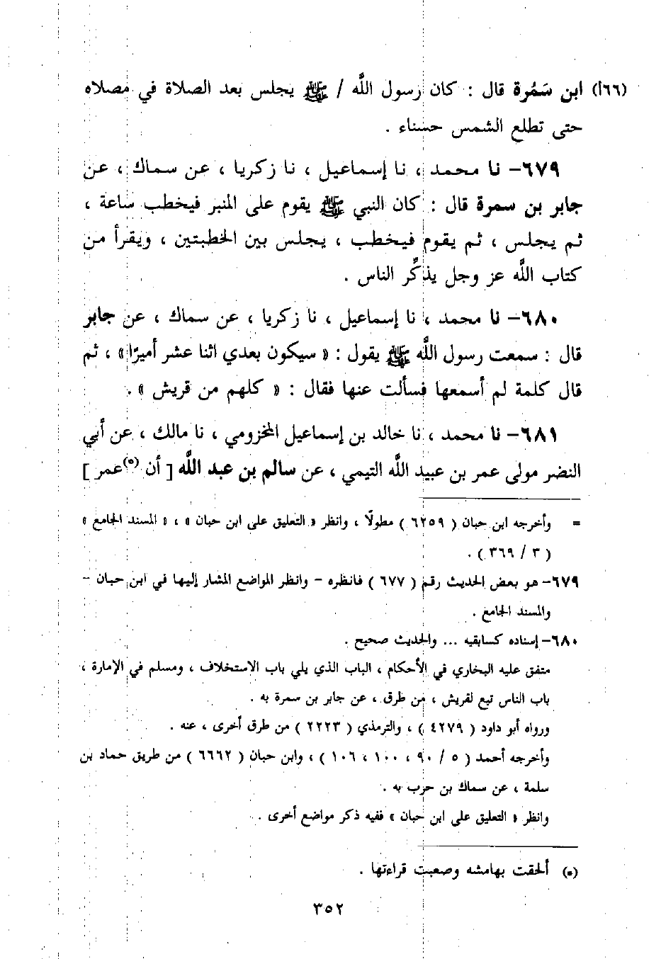 680 - نا مُحَمَّدٌ، نا إِسْمَاعِيلُ، نا زَكَرِيَّا، عَنْ سِمَاكٍ، عَنْ جَابِرٍ قَالَ: سَمِعْتُ رَسُولَ اللَّهِ صَلَّى اللَّهُ عَلَيْهِ وَسَلَّمَ يَقُولُ: «§سَيَكُونُ بَعْدِي اثْنَا عَشَرَ أَمِيرًا» ثُمَّ قَالَ كَلِمَةً لَمْ أَسْمَعْهَا فَسَأَلْتُ عَنْهَا فَقَالَ: «كُلُّهُمْ مِنْ قُرَيْشٍ»