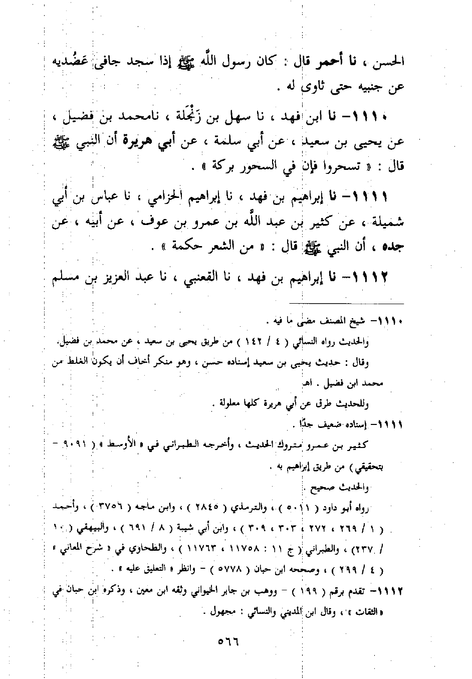 1111 - نا إِبْرَاهِيمُ بْنُ فَهْدٍ، نا إِبْرَاهِيمُ الْحِزَامِيُّ، نا عَبَّاسُ بْنُ أَبِي شُمَيْلَةَ عَنْ كَثِيرِ بْنِ عَبْدِ اللَّهِ بْنِ عَمْرِو بْنِ عَوْفٍ، عَنْ أَبِيهِ، عَنْ جَدِّهِ، أَنَّ النَّبِيَّ صَلَّى اللَّهُ عَلَيْهِ وَسَلَّمَ قَالَ: §مِنَ الشِّعْرِ حِكْمَةٌ