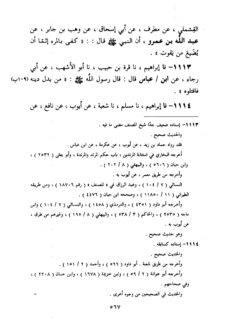 1113 - نا إِبْرَاهِيمُ، نا قُرَّةُ بْنُ حَبِيبٍ، نا أَبُو الْأَشْهَبِ، عَنْ أَبِي رَجَاءٍ عَنِ ابْنِ عَبَّاسٍ قَالَ: قَالَ رَسُولُ اللَّهِ صَلَّى اللَّهُ عَلَيْهِ وَسَلَّمَ: §مَنْ بَدَّلَ دِينَهُ فَاقْتُلُوهُ