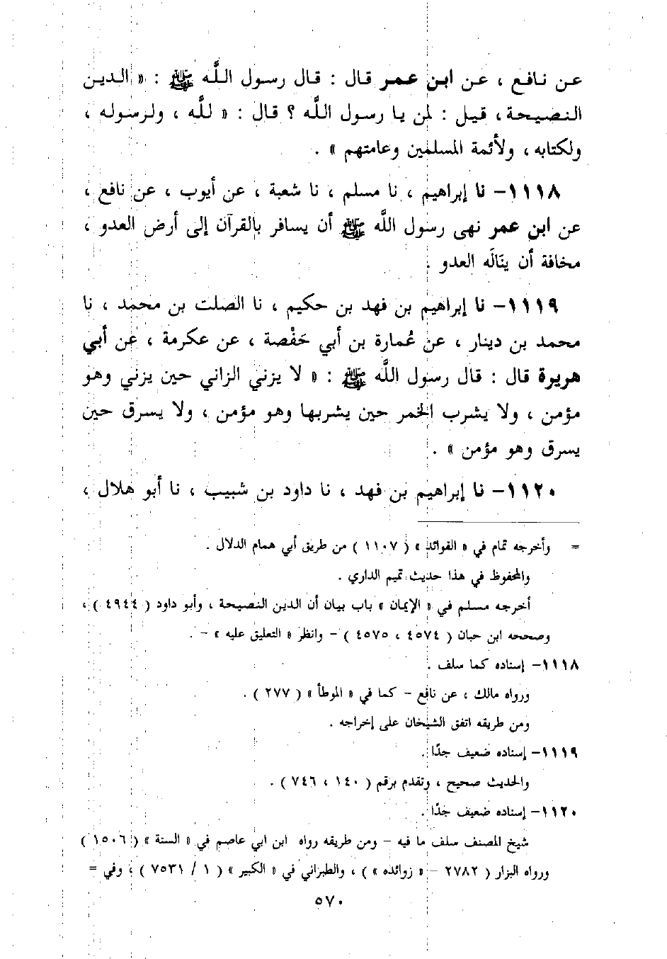 1118 - نا إِبْرَاهِيمُ، نا مُسْلِمٌ، نا شُعْبَةُ، عَنْ أَيُّوبَ، عَنْ نَافِعٍ عَنِ ابْنِ عُمَرَ، نَهَى رَسُولُ اللَّهِ صَلَّى اللَّهُ عَلَيْهِ وَسَلَّمَ أَنْ §يُسَافَرَ بِالْقُرْآنِ إِلَى أَرْضِ الْعَدُوِّ، مَخَافَةَ أَنْ يَنَالَهُ الْعَدُوُّ