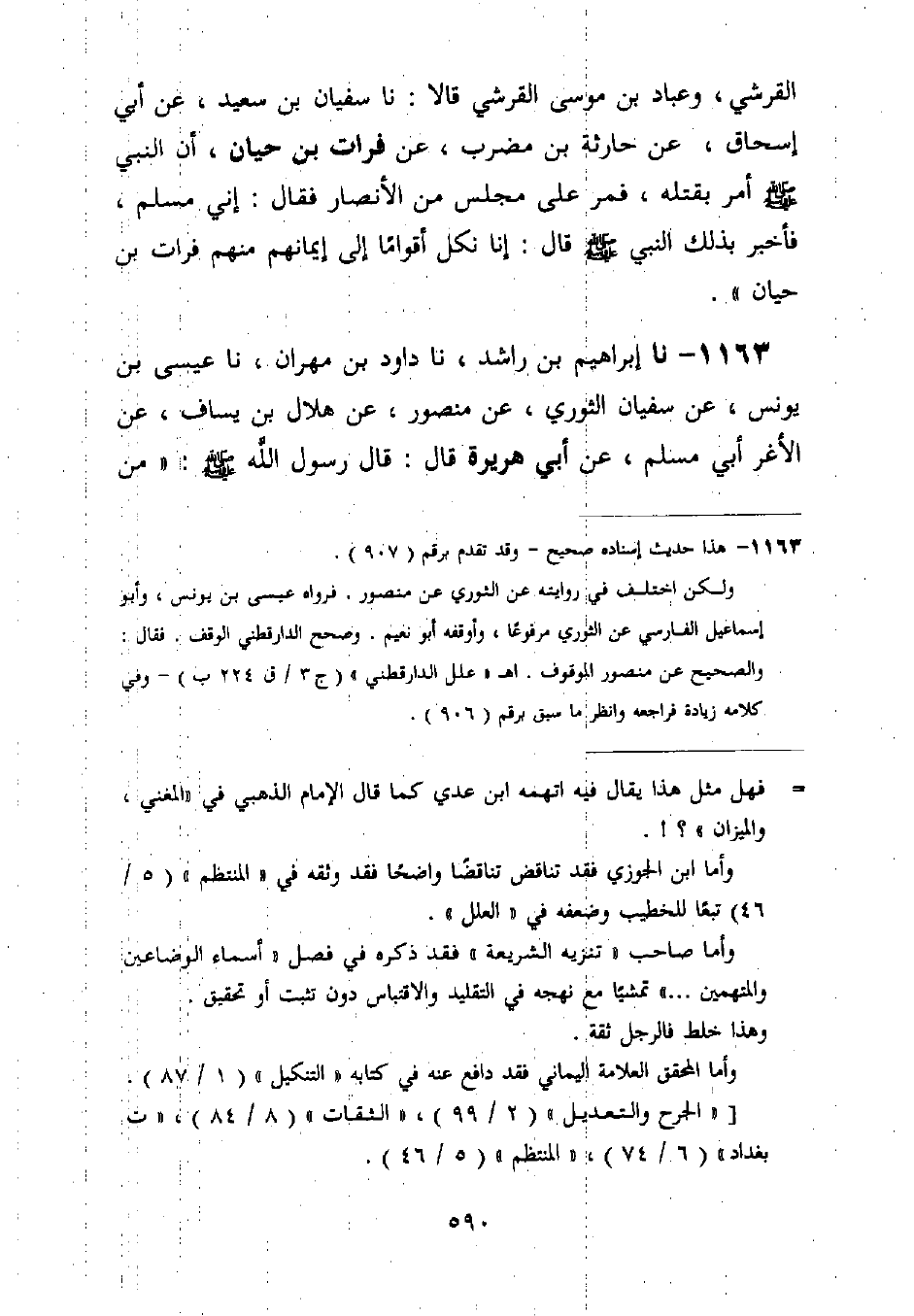 1163 - نا إِبْرَاهِيمُ بْنُ رَاشِدٍ، نا دَاوُدُ بْنُ مِهْرَانَ، نا عِيسَى بْنُ يُونُسَ، عَنْ سُفْيَانَ الثَّوْرِيِّ، عَنْ مَنْصُورٍ، عَنْ هِلَالِ بْنِ يَسَافٍ، عَنِ الْأَغَرِّ أَبِي مُسْلِمٍ عَنْ أَبِي هُرَيْرَةَ قَالَ: قَالَ رَسُولُ اللَّهِ صَلَّى اللَّهُ عَلَيْهِ وَسَلَّمَ: §مَنْ -[591]- قَالَ لَا إِلَهَ إِلَّا اللَّهُ أَنْجَتْهُ يَوْمًا مِنْ دَهْرِهِ، أَصَابَهُ قَبْلَهُ مَا أَصَابَهُ