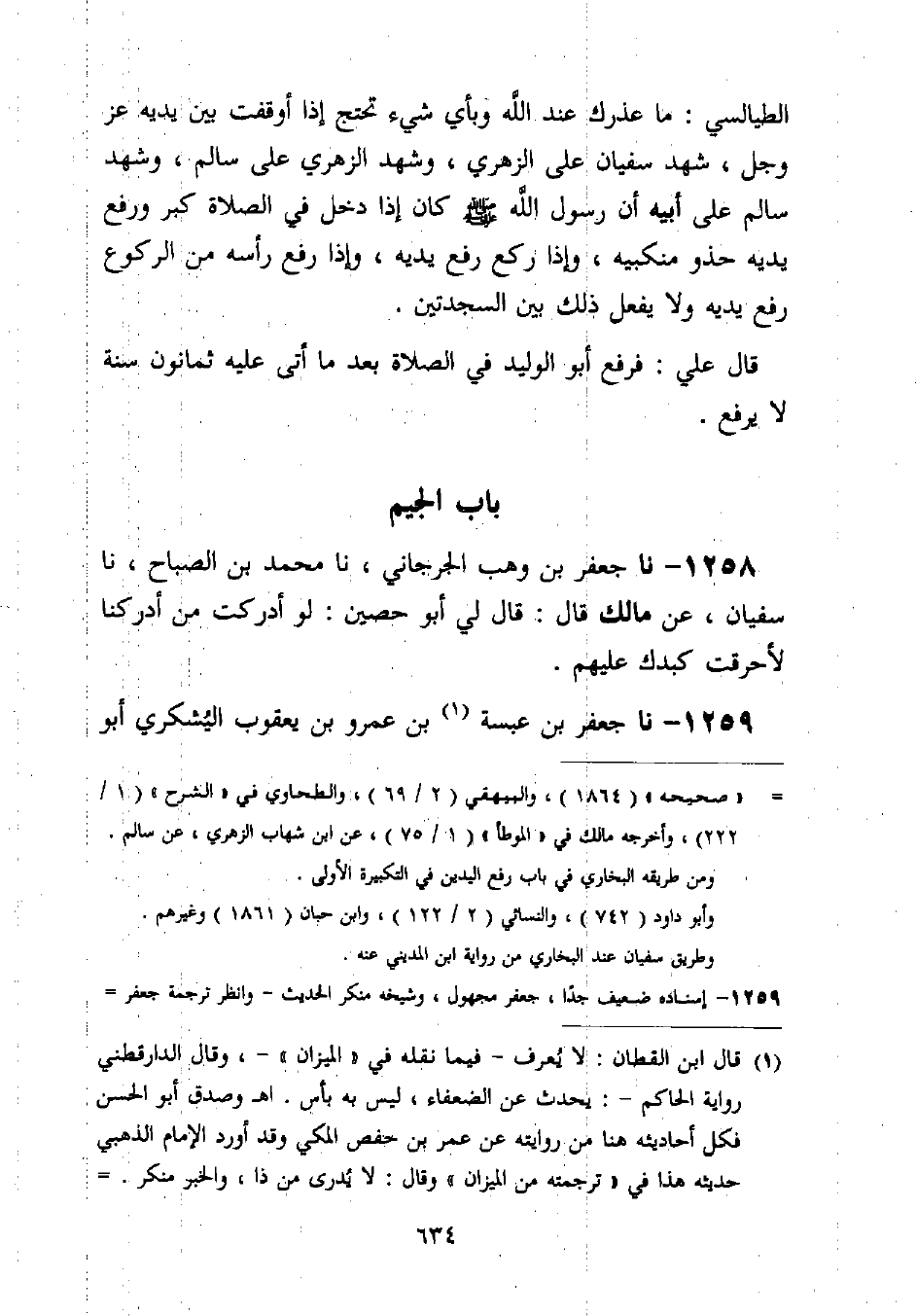 1258 - نا جَعْفَرُ بْنُ وَهْبٍ الْجُرْجَانِيُّ، نا مُحَمَّدُ بْنُ الصَّبَّاحِ، نا سُفْيَانُ، عَنْ مَالِكٍ قَالَ: قَالَ لِي أَبُو حُصَيْنٍ: §لَوْ أَدْرَكْتَ مَنْ أَدْرَكْنَا لَأَحْرَقْتَ كَبِدَكَ عَلَيْهِمْ