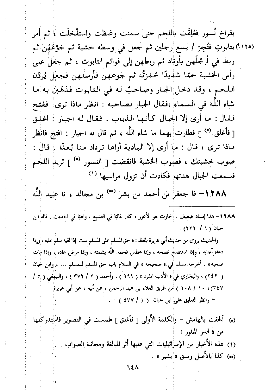 1288 - نا جَعْفَرُ بْنُ أَحْمَدَ بْنِ بِشْرِ بْنِ مُجَالِدٍ، نا عُبَيْدُ اللَّهِ -[649]- بْنُ مُوسَى، نا إِسْرَائِيلُ، عَنْ أَبِي إِسْحَاقَ، عَنِ الْحَارِثِ عَنْ عَلِيٍّ قَالَ: قَالَ رَسُولُ اللَّهِ صَلَّى اللَّهُ عَلَيْهِ وَسَلَّمَ: §لِلْمُسْلِمِ عَلَى الْمُسْلِمِ سِتٌّ بِالْمَعْرُوفِ: حَقٌّ عَلَيْهِ أَنْ يُسَلِّمَ عَلَيْهِ إِذَا لَقِيَهُ، وَأَنْ يَسْقِيَهُ إِذَا عَطِشَ، وَيَعُودَهُ إِذَا مَرِضَ، وَيُجِيبَهُ إِذَا دَعَاهُ، وَيَشْهَدَهُ إِذَا تُوُفِّيَ، وَيُحِبَّ لَهُ مَا يُحِبُّ لِنَفْسِهِ، وَيَنْصَحَ لَهُ بِالْغَيْبِ. هَكَذَا فِي كِتَابِ الشَّيْخِ: وَيَسْقِيهِ إِذَا عَطِشَ