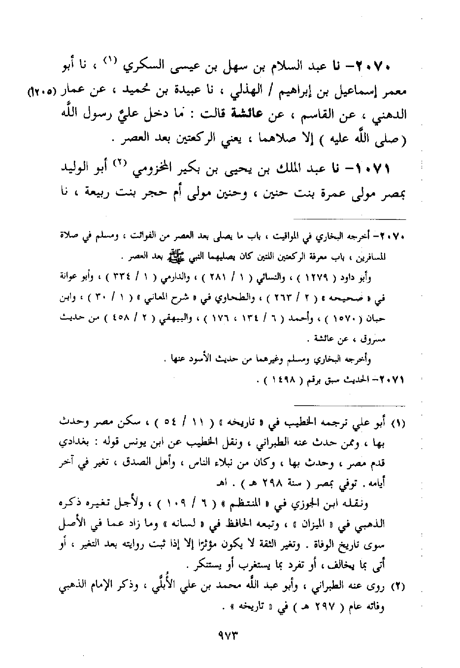 2070 - نا عَبْدُ السَّلَامِ بْنُ سَهْلِ بْنِ عِيسَى السُّكَّرِيُّ، نا أَبُو مَعْمَرٍ إِسْمَاعِيلُ بْنُ إِبْرَاهِيمَ الْهُذَلِيُّ، نا عَبِيدَةُ بْنُ حُمَيْدٍ، عَنْ عَمَّارٍ الدُّهْنِيِّ، عَنِ الْقَاسِمِ، عَنْ عَائِشَةَ قَالَتْ: §مَا دَخَلَ عَلَيَّ رَسُولُ اللَّهِ صَلَّى اللَّهُ عَلَيْهِ وَسَلَّمَ إِلَّا صَلَّاهُمَا، يَعْنِي الرَّكْعَتَيْنِ بَعْدَ الْعَصْرِ