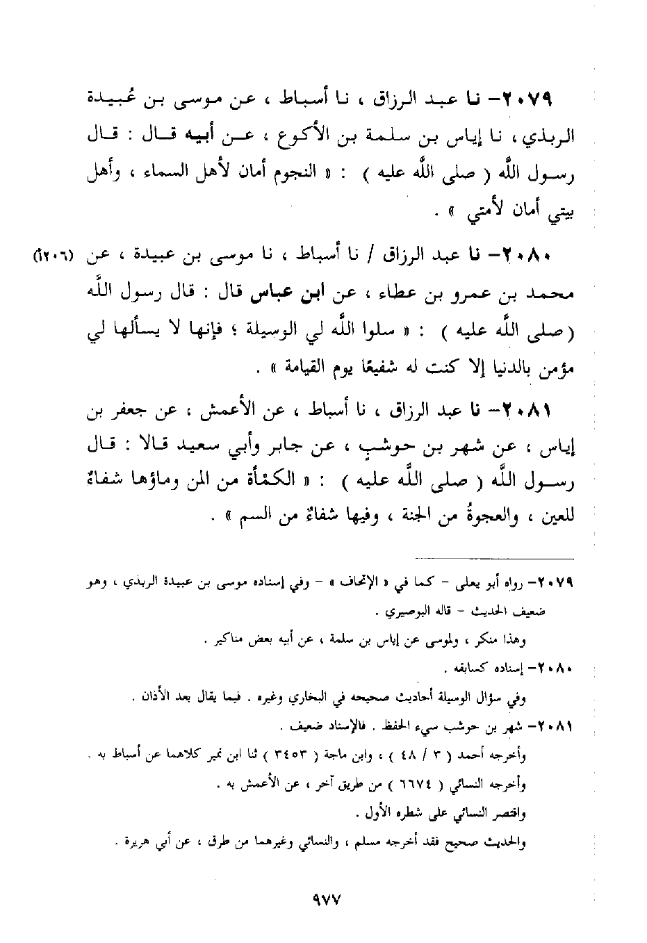 2079 - نا عَبْدُ الرَّزَّاقِ، نا أَسْبَاطٌ، عَنْ مُوسَى بْنِ عُبَيْدَةَ الرَّبَذِيِّ، نا إِيَاسُ بْنُ سَلَمَةَ بْنِ الْأَكْوَعِ، عَنْ أَبِيهِ قَالَ: قَالَ رَسُولُ اللَّهِ صَلَّى اللَّهُ عَلَيْهِ وَسَلَّمَ: §النُّجُومُ أَمَانٌ لِأَهْلِ السَّمَاءِ، وَأَهْلُ بَيْتِي أَمَانٌ لِأُمَّتِي