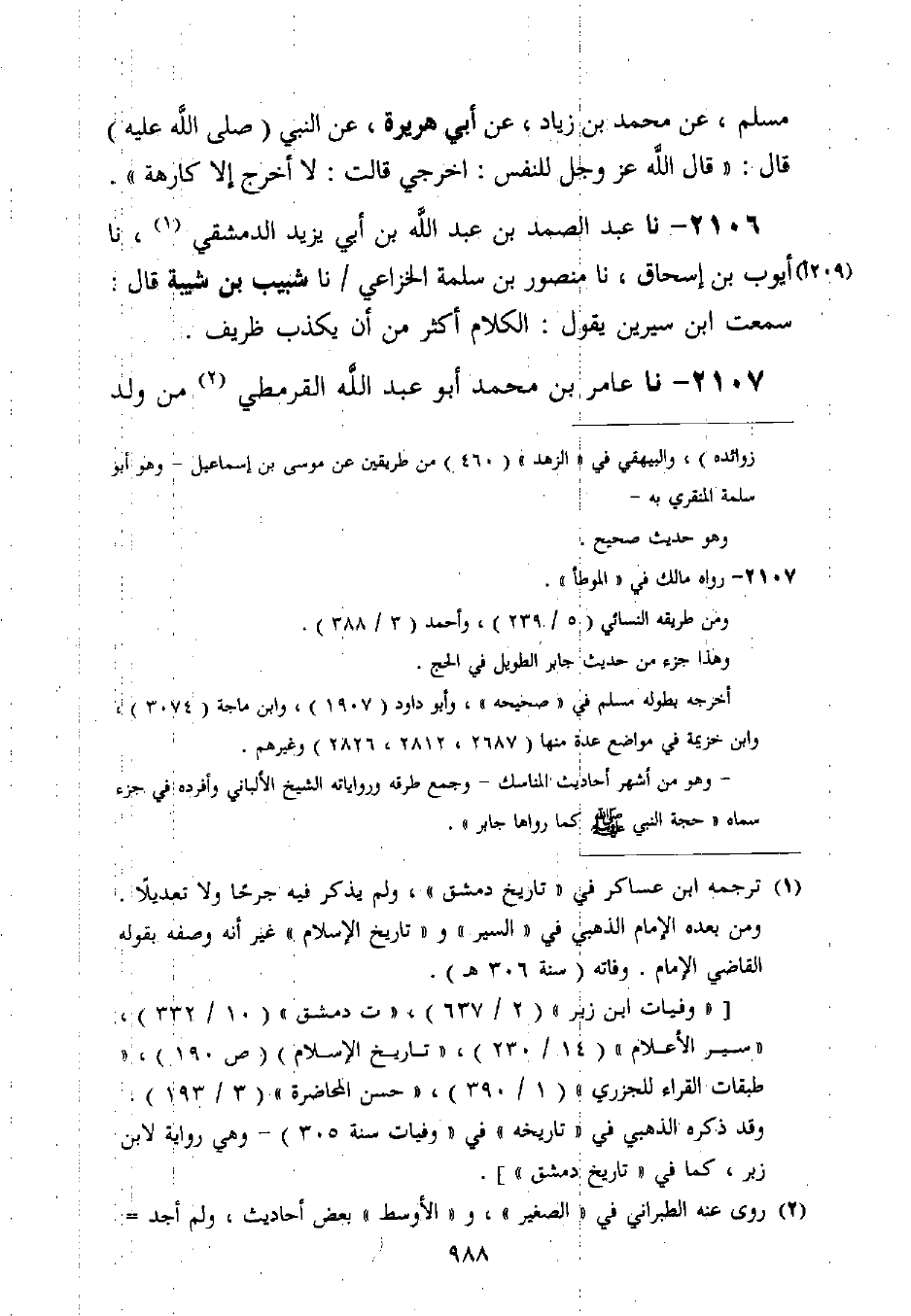 2106 - نا عَبْدُ الصَّمَدِ بْنُ عَبْدِ اللَّهِ بْنِ أَبِي يَزِيدَ الدِّمَشْقِيُّ، نا أَيُّوبُ بْنُ إِسْحَاقَ، نا مَنْصُورُ بْنُ سَلَمَةَ الْخُزَاعِيُّ، نا شَبِيبُ بْنُ شَيْبَةَ قَالَ: سَمِعْتُ ابْنَ سِيرِينَ يَقُولُ: §الْكَلَامُ أَكْثَرُ مِنْ أَنْ يُكْذَبَ ظَرِيفٌ
