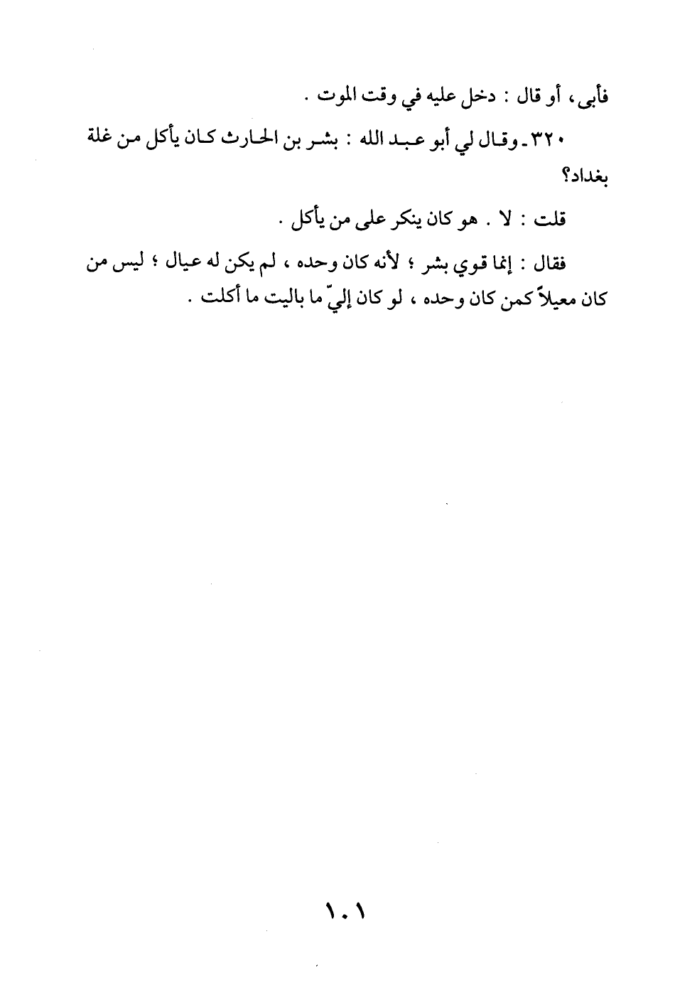 320 - وَقَالَ لِي أَبُو عَبْدِ اللَّهِ بِشْرُ بْنُ الْحَارِثِ كَانَ يَأْكُلُ مِنْ غَلَّةِ بَغْدَادَ