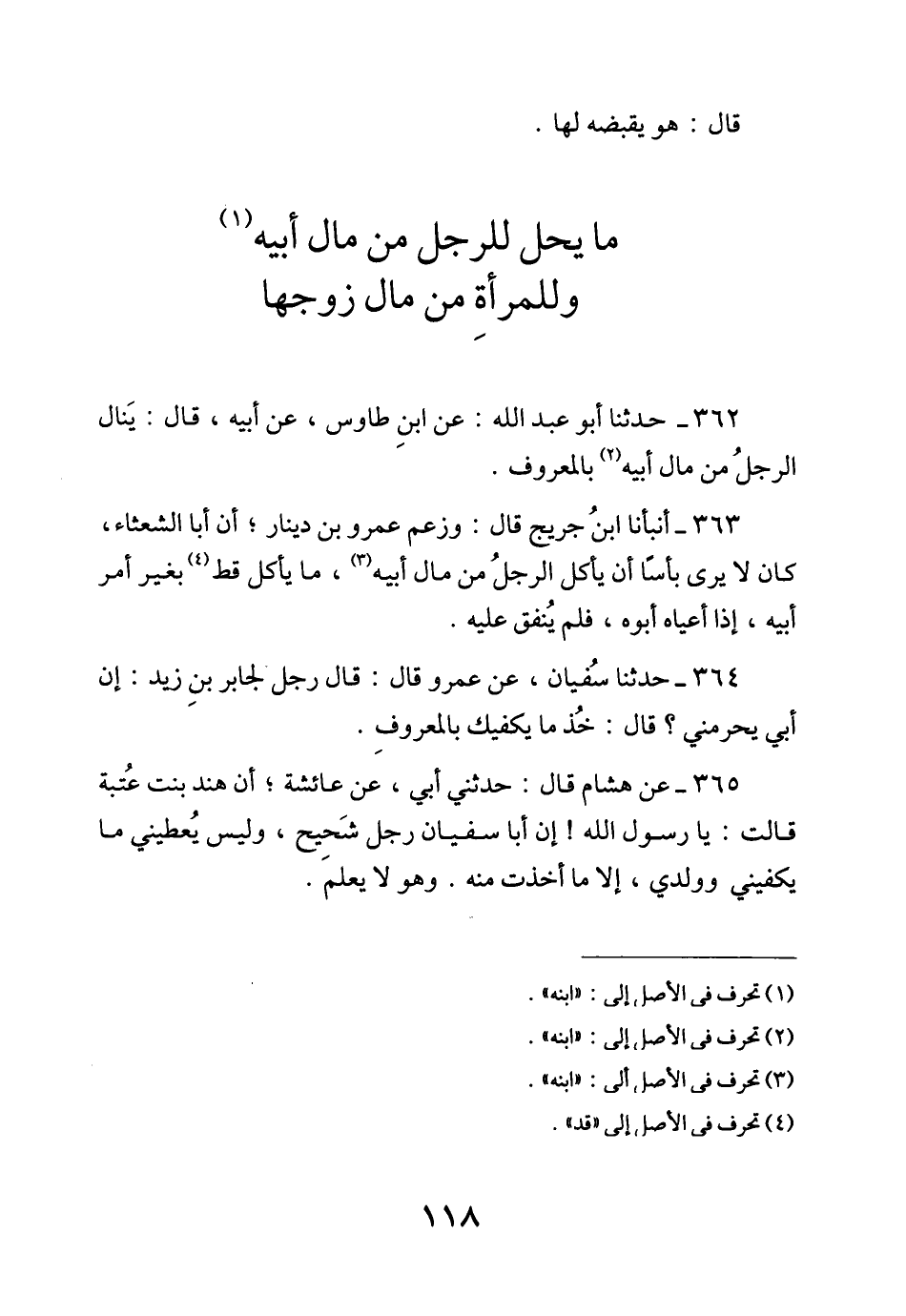 362 - حَدَّثَنَا أَبُو عَبْدِ اللَّهِ عَنِ ابْنِ طَاوُسٍ عَنْ أَبِيهِ قَالَ يَنَالُ الرَّجُلُ مِنْ مَالِ أَبِيهِ بِالْمَعْرُوفِ