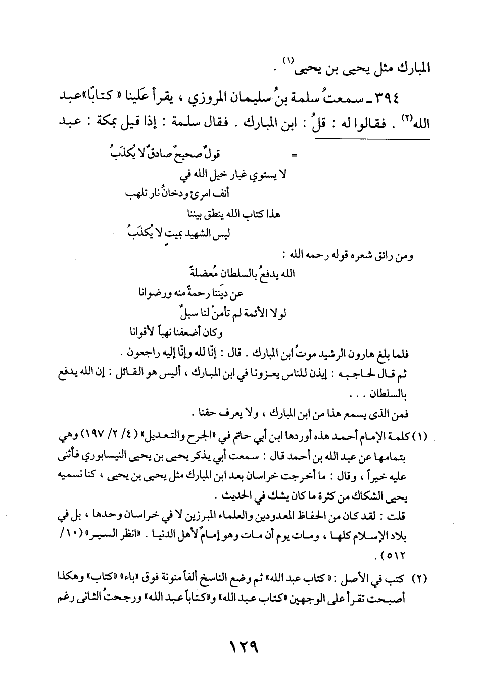 394 - سَمِعْتُ سَلَمَةَ بْنَ سُلَيْمَانَ الْمَرْوَزِيَّ يقْرَأ علينا كتابا عَبْدِ اللَّهِ