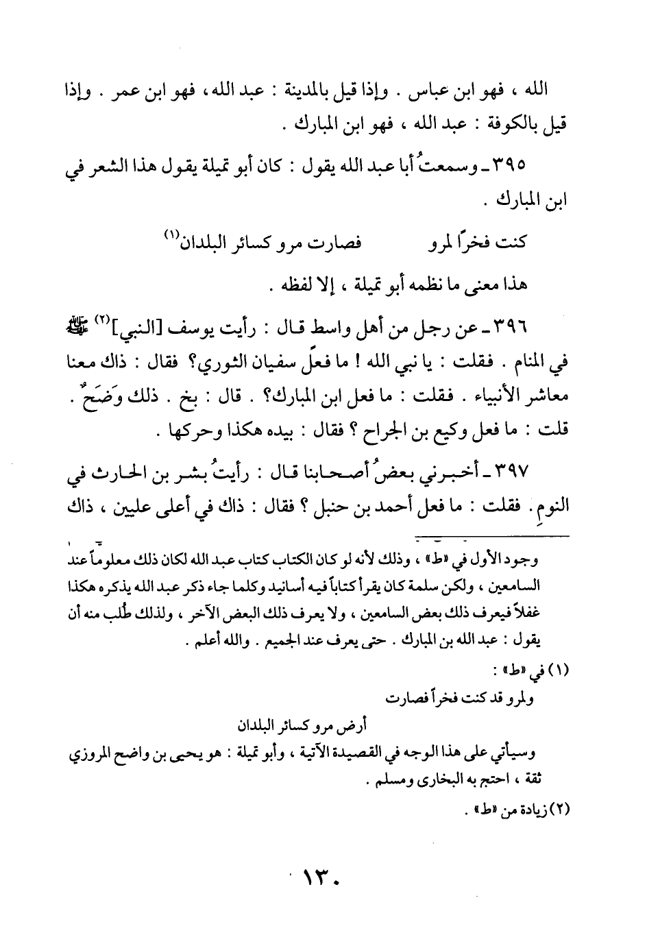 395 - وَسَمِعْتُ أَبَا عَبْدِ اللَّهِ يَقُولُ كَانَ أَبُو تُمَيْلَةَ يَقُولُ هَذَا الشِّعْرَ فِي ابْنِ الْمُبَارَكِ