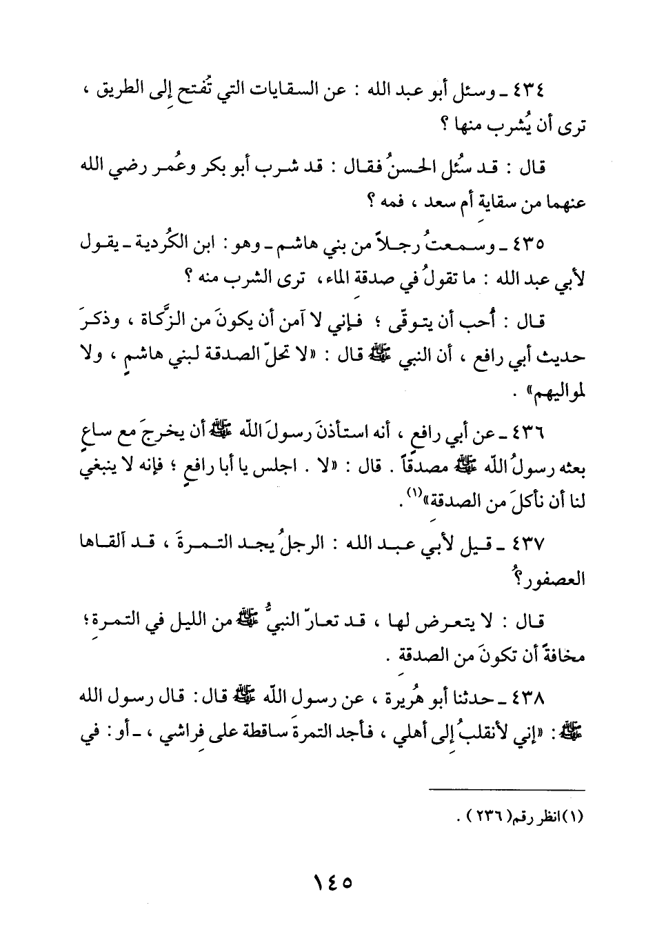 435 - وَسَمِعْتُ رَجُلًا مِنْ بَنِي هَاشِمٍ وَهُوَ ابْنُ الْكُرْدِيَّةِ يَقُولُ لِأَبِي عَبْدِ اللَّهِ مَا تَقُولُ فِي صَدَقَةِ الْمَاءِ تَرَى الشُّرْبَ مِنْهُ