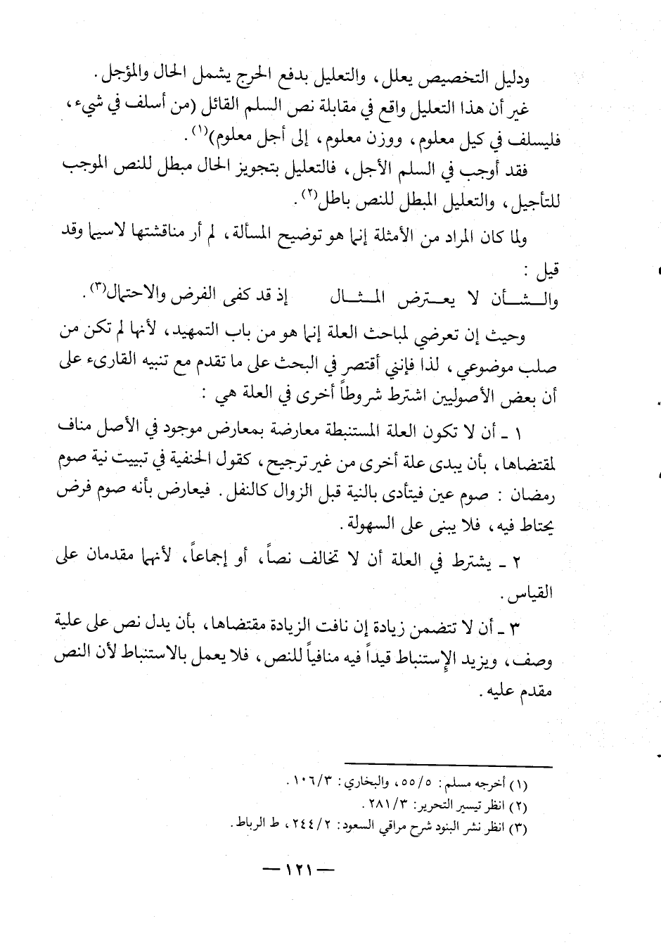 فقد أوجب في السلم الأجل، فالتعليل بتجويز الحال مبطل للنص الموجب للتأجيل، والتعليل المبطل للنص باطل2.