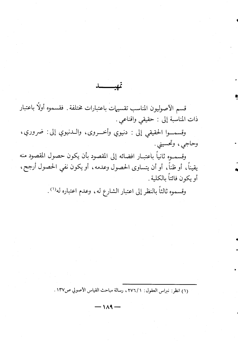 1 انظر: نبراس العقول 1/276، رسالة مباحث القياس الأصولي ص 137.