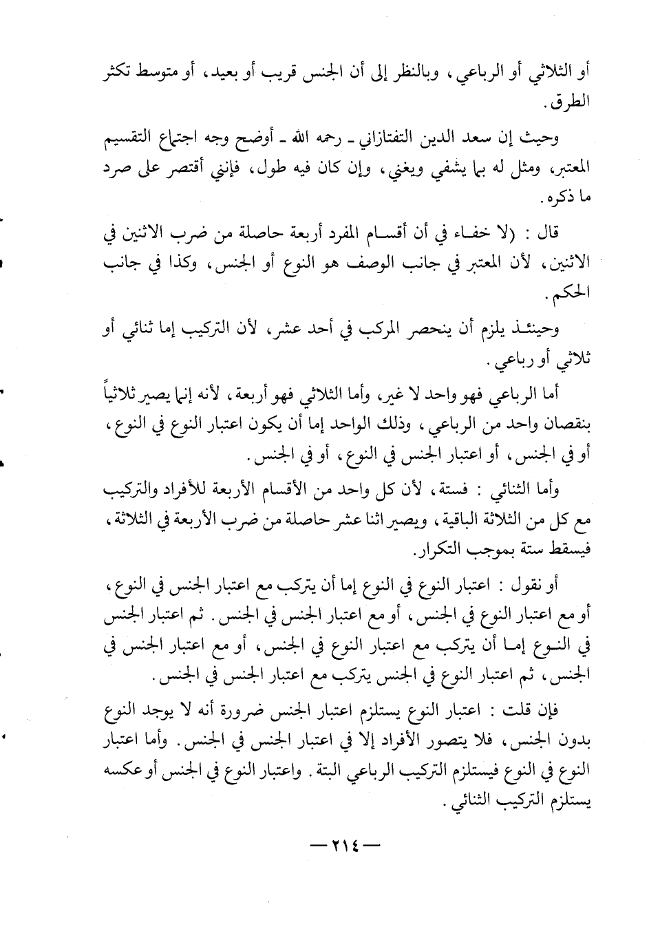 أو نقول: اعتبار النوع في النوع إما أن يتركب مع اعتبار الجنس في النوع، أو مع اعتبار النوع في الجنس، أو مع اعتبار الجنس في الجنس، ثم اعتبار الجنس في النوع إما أن يتركب مع اعتبار النوع في الجنس، أو مع اعتبار الجنس في الجنس، ثم اعتبار النوع في الجنس يتركب مع اعتبار الجنس في الجنس.
