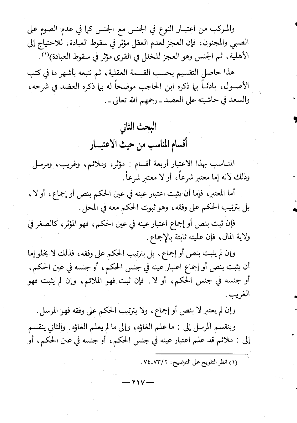المبحث الثاني أقسام المناسب من حيث الاعتبار