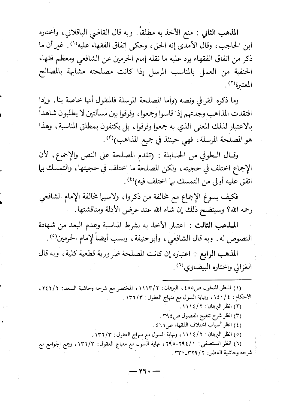 المذهب الرابع: اعتباره إن كانت المصلحة ضرورية قطعية كلية، وبه قال الغزالي واختاره البيضاوي6.
